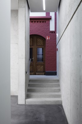 Unser Konzept beinhaltet die Ausstellungsräume behutsam zu sanieren und das Forum als neuen Bestandteil der Gedenkstätte zu verstehen. Das Forum ist ein Ort für Öffentlichkeit, für Auseinandersetzung und Begegnungen, welche bis dahin in der Gedenkstätte nicht möglich waren. Aufgrund der historischen Situation im alten Stadthaus ist kein neues architektonisches Bild entstanden. Die gläserne Fassade des Forums wird bewusst von einem bewachsenen Sichtschirm im Innenhof verdeckt.