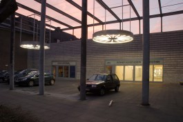 Der Bonner Kunstverein ist seit 1987 in der von Haus-Rucker-Co zum Ausstellungsinstitut umgebauten ehemaligen Blumenhalle untergebracht. Nach 20 Jahren bot sich die Situation so dar: erheblicher Sanierungsstau, Probleme durch geringe Flexibilität im Inneren, da nur ein großer Ausstellungsraum zur Verfügung stand, fehlendes architektonisches Konzept für ein erweitertes kulturelles Angebot. Für Sanierung und Umbau stand ein geringer Etat zur Verfügung. Dem Büro Rheinflügel gelang es, durch den Einbau eines Kubus in den großen Saal drei voneinander unabhängig bespielbare Ausstellungsräume mit vergrößerter Hängefläche zu schaffen, von denen sich der nicht vom Tageslicht beleuchtete Kubus als Raum für Grafik-Ausstellungen und Videoprojektion anbietet. Überzeugend neu strukturiert wurde ferner der Raum der Artothek, die nun im Erdgeschoss vom Publikum genutzt wird. Die Artothek liegt in einer Flucht mit dem Kiosk - ein skulpturales Modulsystem, das mitten im Raum einerseits Lesestoff anbietet, andererseits im Inneren als Küche für das Cafe fungiert - und dem mit Sitzgruppen zu einem einladenden Foyer umfunktionierten Eingangsbereich. Dort finden nun Konzerte und Lesungen statt. Rheinflügel hat diesen früher sehr dunklen Raum durch Glasflächen geöffnet. Der Kunstverein präsentiert sich durch die neue Gliederung der Räume, die architektonische Öffnung nach außen, eine eigene Gastronomie und den neu gestalteten vorgelagerten Hof als attraktives Kultur-und Freizeitforum.