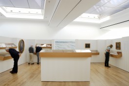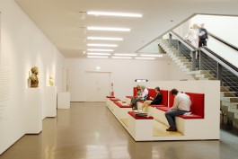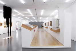 „Wir hatten eine Vision, auch über die Zusammenarbeit der Kunstakademie mit der Kunsthalle und dem Heinrich-Heine-Institut, mit der Robert-Schumann-Forschungsstelle und mit uns Architekten. Als Architekten haben wir die Anzahl der Räume im Verhältnis zu bespielbaren Flächen, Raumhöhen und entsprechenden Teilnehmerzahlen an diesem Projekt sinnvoll zu verteilen. Wobei sich eine Unbekannte im Rechenbeispiel befindet: lässt sich ein Künstler instrumentalisieren oder zumindest steuern?... ...Diese beiden Passagen öffnen sich zum Raum. Für uns war es wichtig, wie diese Wahrnehmung sich für den Besucher entfalten wird. Dass man sich einerseits auf die neuen künstlerischen Arbeiten der Akademie - Klassen einlassen kann, die diese räumliche Situation auch widerspiegeln und auch das Thema aufnehmen. Gleichzeitig sieht man auch die Ausstellungsobjekte aus dem Heinrich-Heine-Institut. Also, wie kann ich mich einerseits in das Manuskript vertiefen und gleichzeitig, wenn ich den Blick hebe, auch den Raum in seiner Gesamtheit sehen, der mich umgibt. Wir wollen eine Wechselwirkung zulassen, deswegen sind die Wände dieser Ausstellungspassagen nicht raumhoch, sondern lassen immer den Bezug nach außen zu."