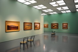 Die dominante Architektur des Architekten Oswald Mathias Ungers definiert die Ausstellungsräume des Museum Kunstpalast und bildet auch den Hintergrund dieser Ausstellung. Gleichwohl entwirft diese Ausstellung ein elegantes, starkes Gegenbild zu diesem architektonischen Rahmen: das 19.Jahrhundert der Düsseldorfer Malerschule; in Wandgestaltung, besonderem Ausstellungsmobiliar und den Gemälden und Zeichnungen.