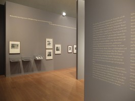 "Die Idee war, dass der Besucher das, was ihm in den Gemälden und in der Fotografie begegnet, auch selbst in den Ausstellungsräumen wahrnimmt. Dass er sich bewegt wie in einer Stadt. Viele Ausstellungen funktionieren durch einen gelenkten Umlauf. Man hat einen Anfang, einen Gang der durch Ausstellungswände begrenzt ist, und wird durch die Ausstellung geleitet. Das hat gewiss auch Vorteile. Aber ich wollte, dass der Besucher sich frei fühlt, als könnte er in diesen Bildern laufen. Ansatzweise sollte dieses Tempo, das man als Passant in einer Stadt hat, dieses Schlendern und Flanieren, auch in der Ausstellung funktionieren."