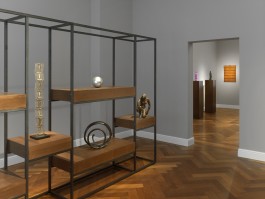 Die Ausstellungsdisplays für die Galerie Ludorff beziehen sich auf diese Möbelentwürfe Wäckerlins. Es sind moderne Raumvorstellungen.